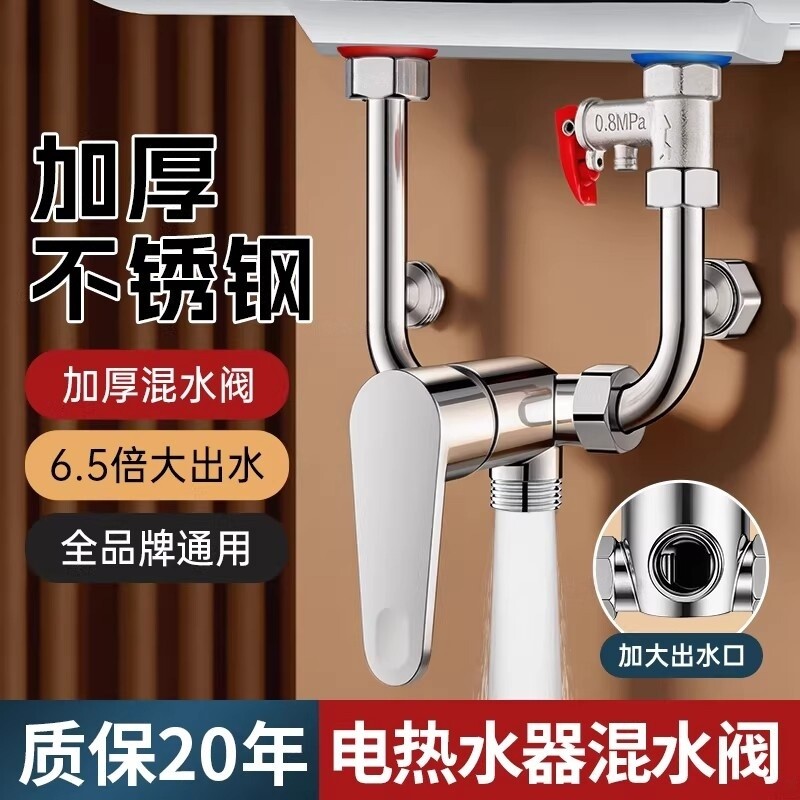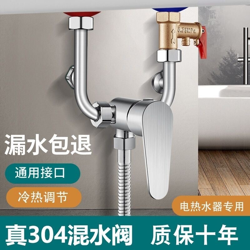 304不锈钢电热水器u型混水阀开关冷热水双控大流量淋浴龙头通用