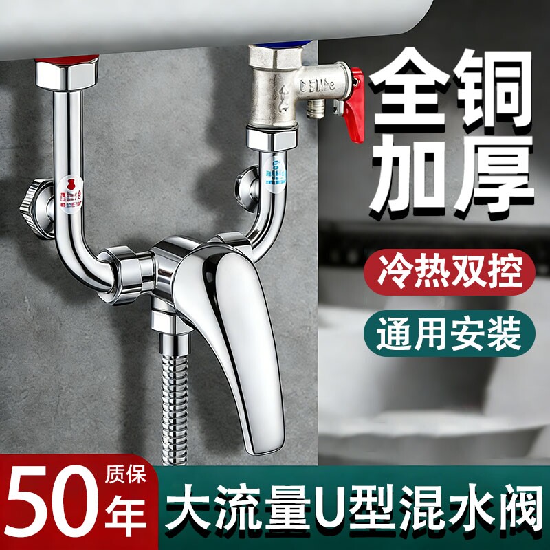 全铜电热水器U型混水阀大流量大口径U形明装阀通用冷热水龙头配件