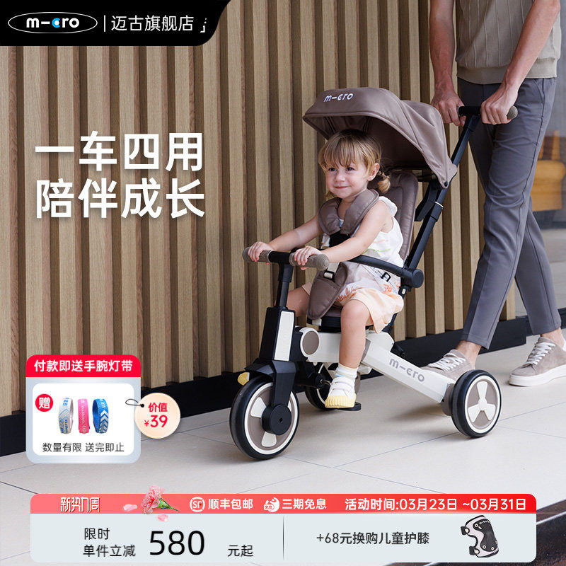 瑞士micro迈古儿童三轮车遛娃神器手推车可推可骑 折叠宝宝脚踏车