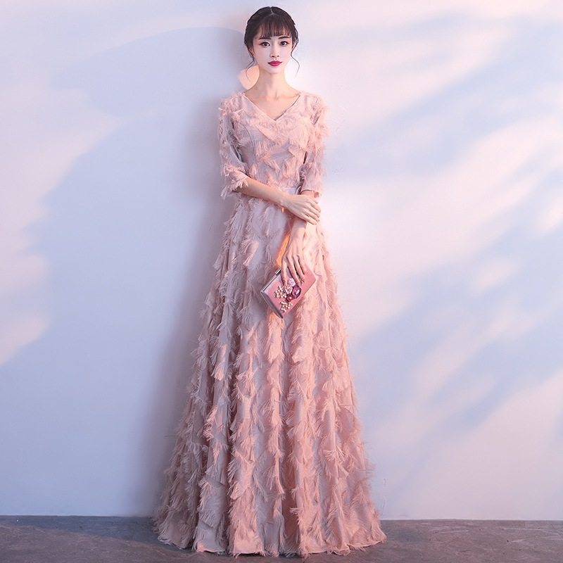 粉色伴娘服2026新款端庄大气长款显瘦主持人晚宴宴会晚礼服长裙女