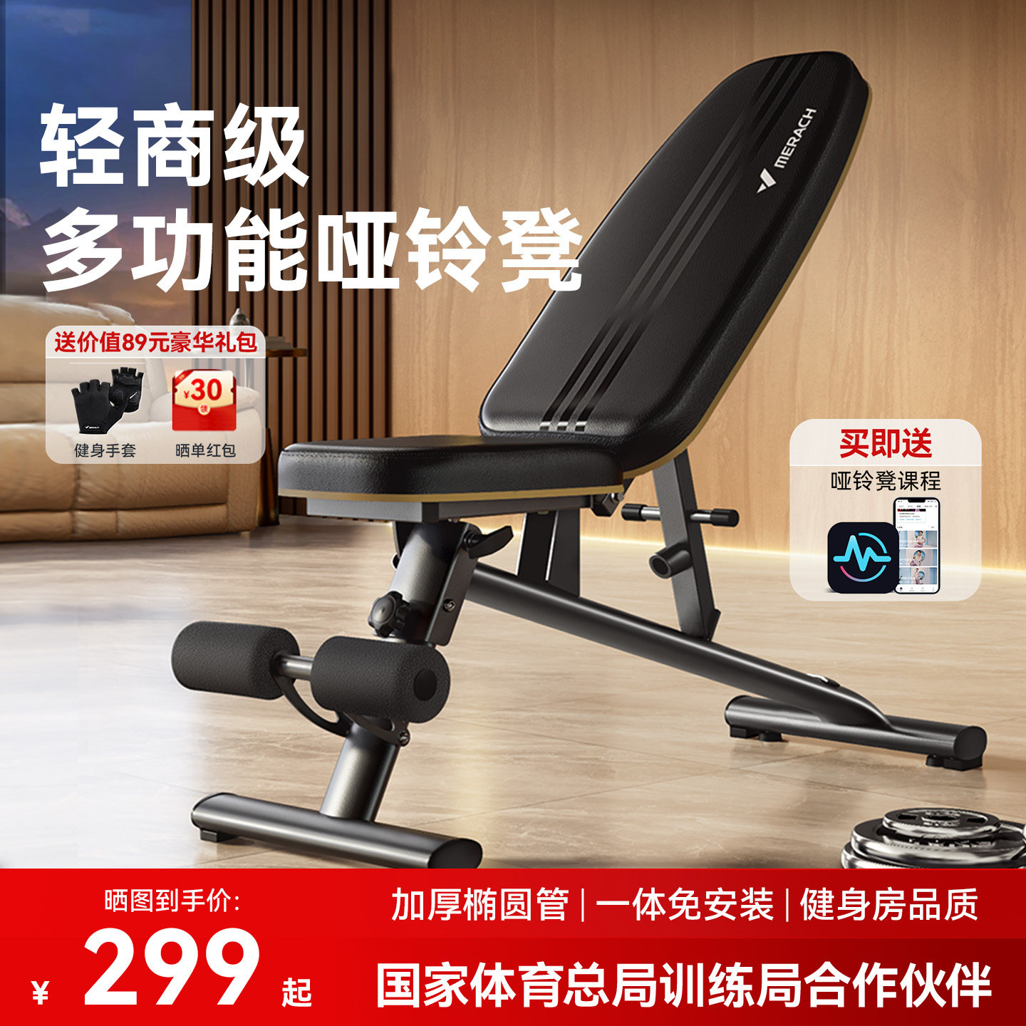 麦瑞克哑铃凳家用多功能仰卧起坐板飞鸟健身椅男士专业杠铃卧推凳