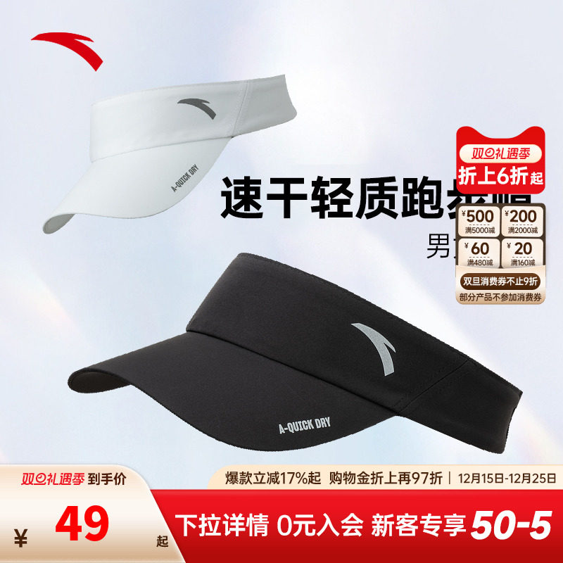 安踏空顶帽2025新款男女棒球帽鸭舌帽轻质运动跑步骑行遮阳帽子