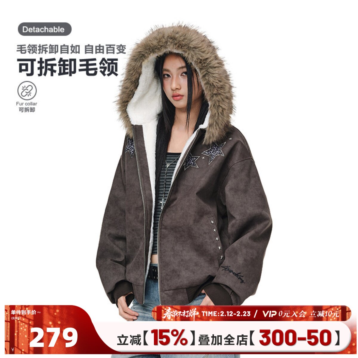 棉服版/月蚀征伐重工刺绣铆钉亚文化连帽外套夹克棉服莓派派原创