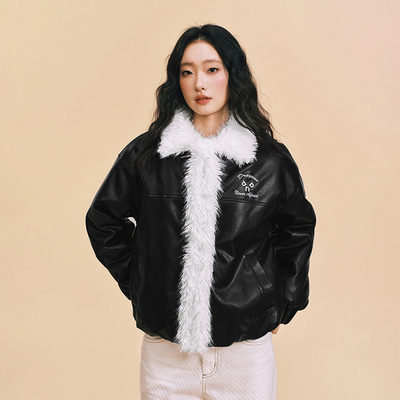 【DNA官方】飞行夹克棉服25年暖冬新款翻领PU革皮衣刺绣毛领外套