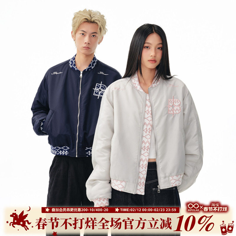 BIPOLAR民族刺绣夹克棉服棒球服美式休闲上衣男宽松拉链外套秋冬