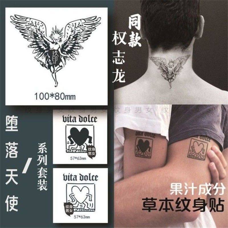 果汁权志龙同款守护天使纹身贴防水男女 韩国持久暗黑搓不掉纹身