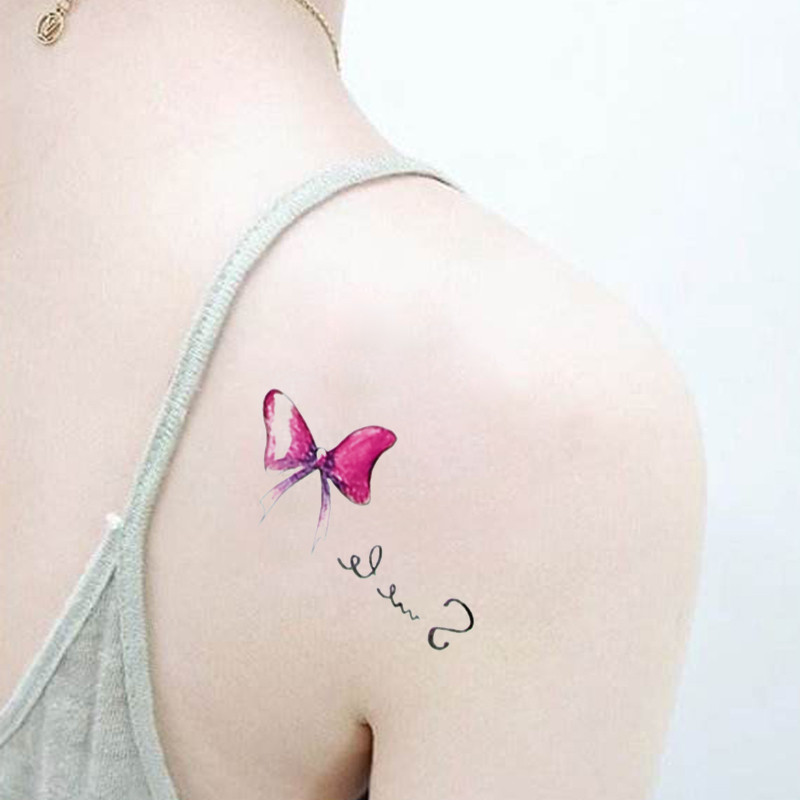 纹身贴防水女持久小清新蝴蝶结英文ins风锁骨手臂韩国仿真小贴纸
