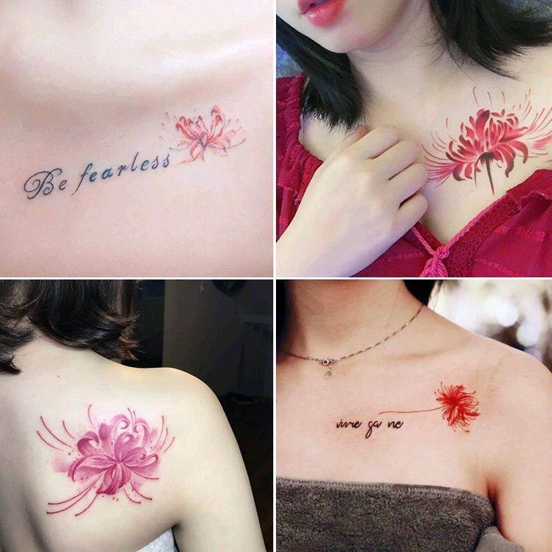 彼岸花纹身贴曼珠沙华防水女持久韩国仿真小清新唯美性感锁骨花臂
