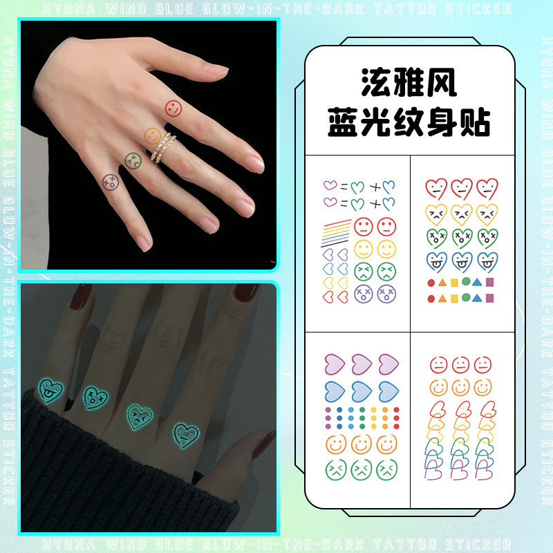 泫雅风纹身贴女防水持久同款手指纹身贴纸ins韩国彩色笑脸小清新