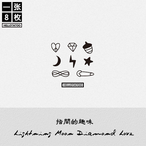 钻石月亮 韩国原创手指小纹身贴 防水男女情侣款黑白贴纸持久刺青