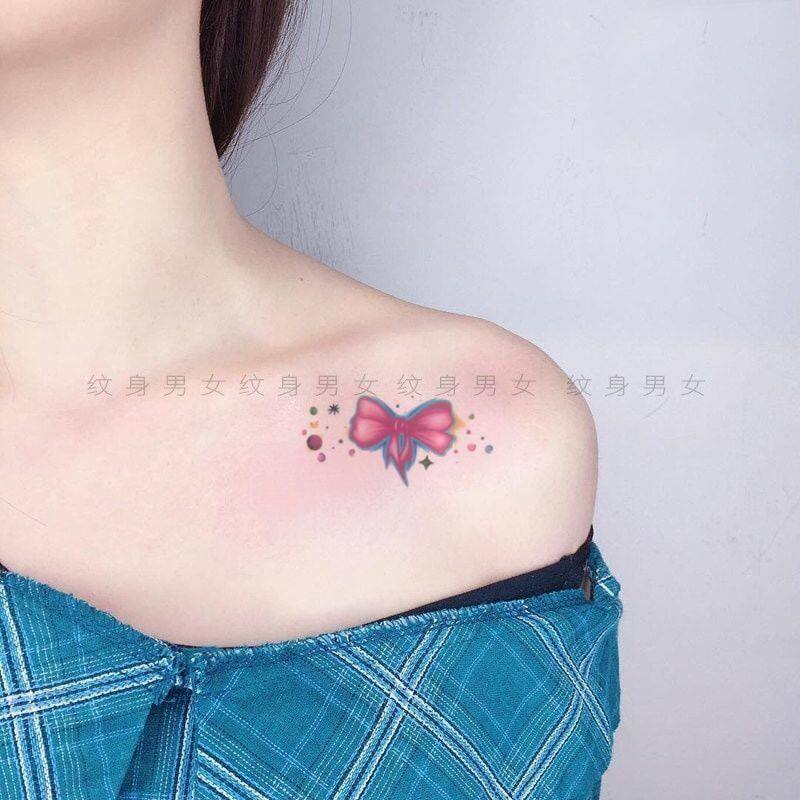 少女心蝴蝶结纹身贴防水持久韩国小清新可爱软妹逼真手上锁骨文身