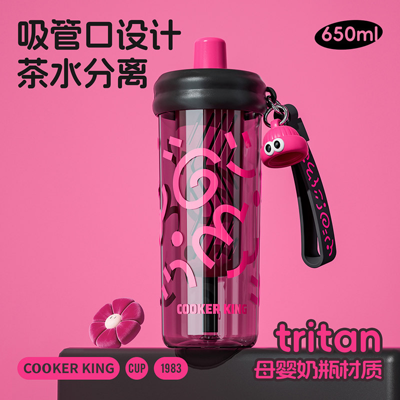 炊大皇吸管水杯女生高颜值夏天成人塑料杯可爱便携大容量儿童杯子