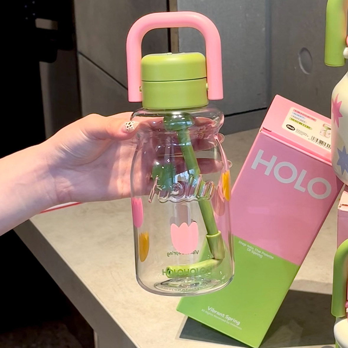 holoholo糖果杯子女高颜值咖啡塑料马克杯可爱夏季大容量吸管水杯