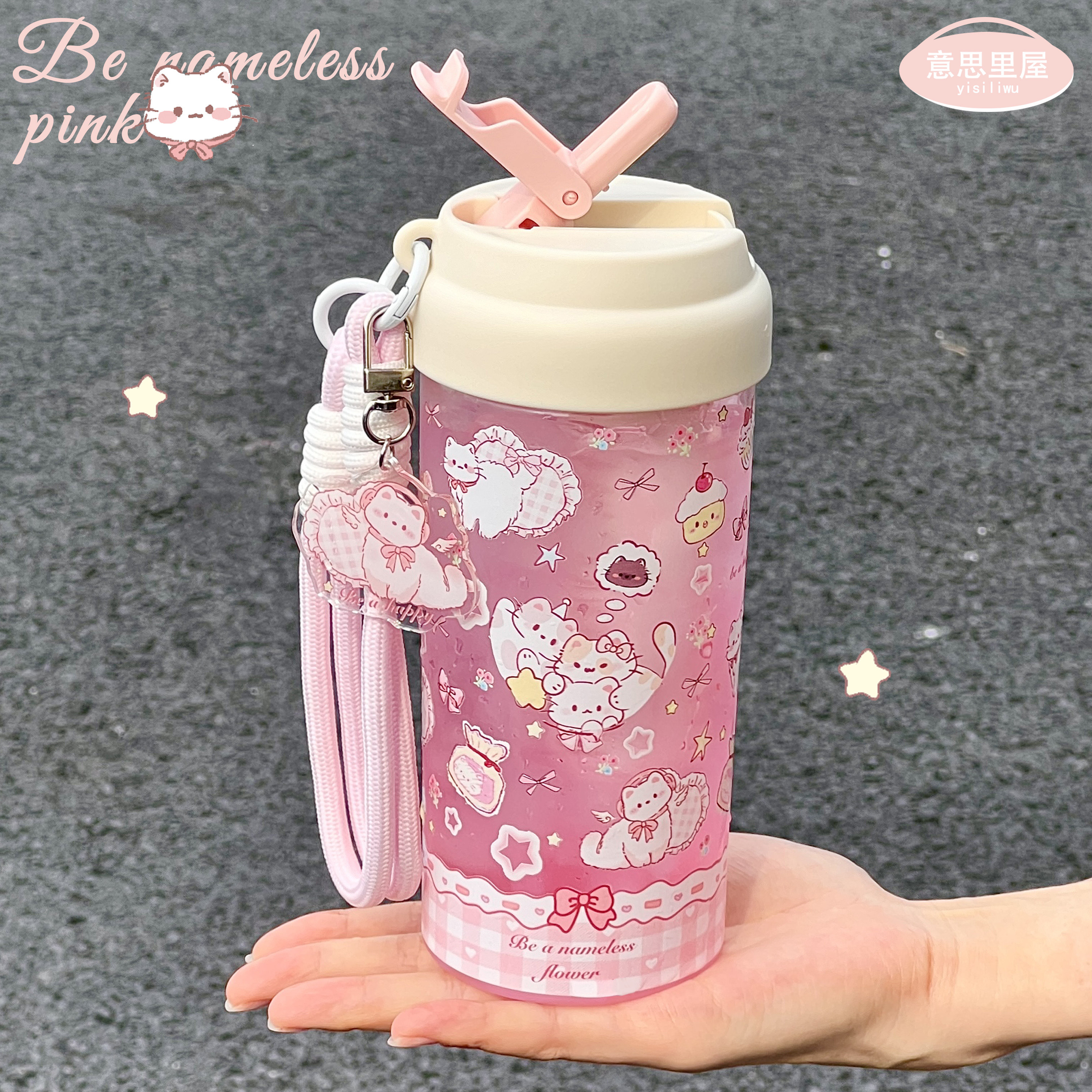原创猫咪tritan粉色吸管杯夏季高颜值便携可爱生日礼物塑料水杯女
