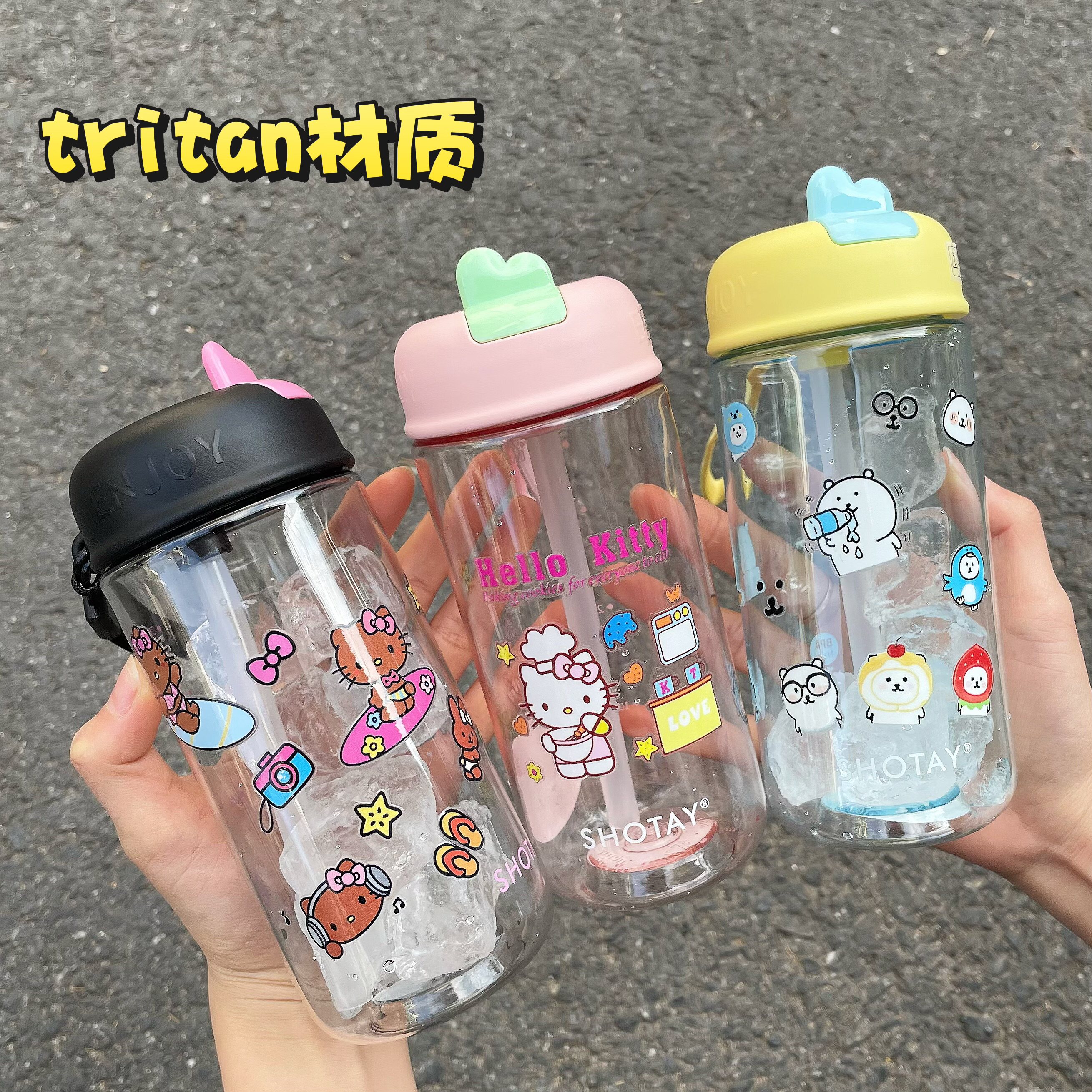 tritan吸管杯女生夏季可爱高颜值便携水杯儿童杯子便携塑料杯