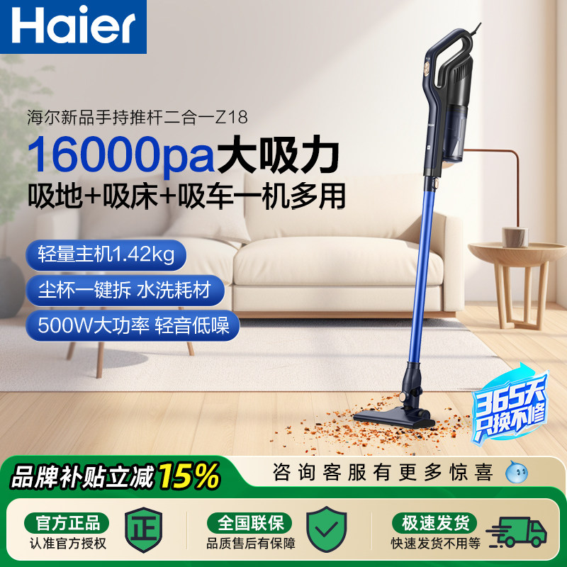 海尔吸尘器家用手持立式有线除尘机轻量家庭宠物清洁器便携式推杆