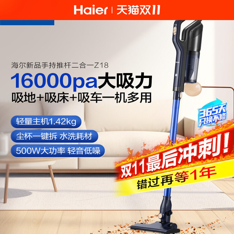 海尔吸尘器家用小型手持多功能强大吸力地毯宠物毛发吸拖地一体机