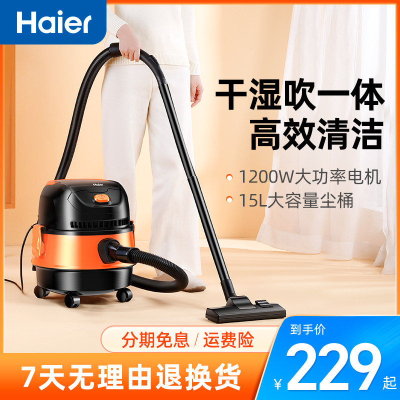 海尔吸尘器家用大吸力干湿两用强力大功率小型桶式装修猫毛吸尘机