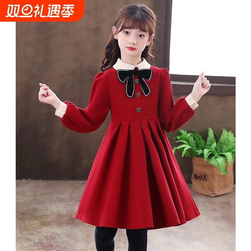 女童连衣裙春秋款洋气2025新款儿童公主裙女孩时髦红色裙子中大童