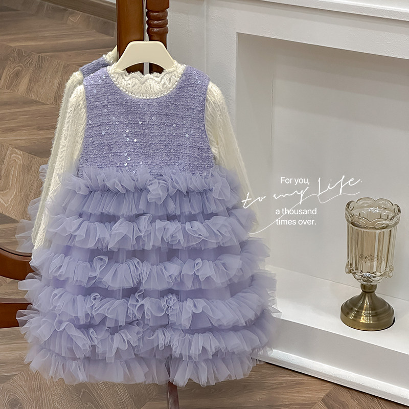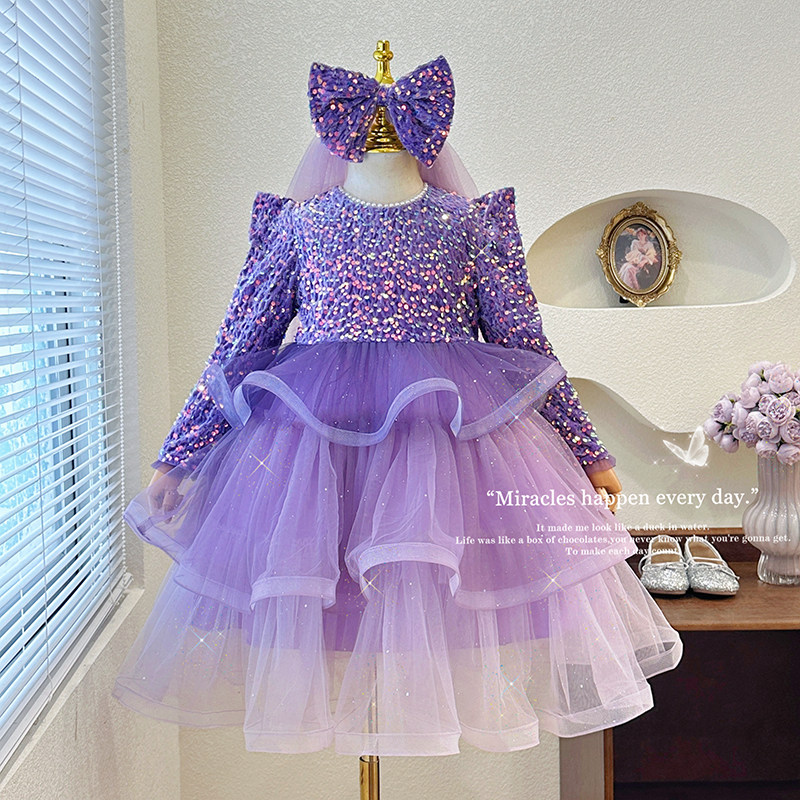 女童连衣裙春秋款高级感儿童紫色加绒公主裙洋气生日礼服蓬蓬纱裙