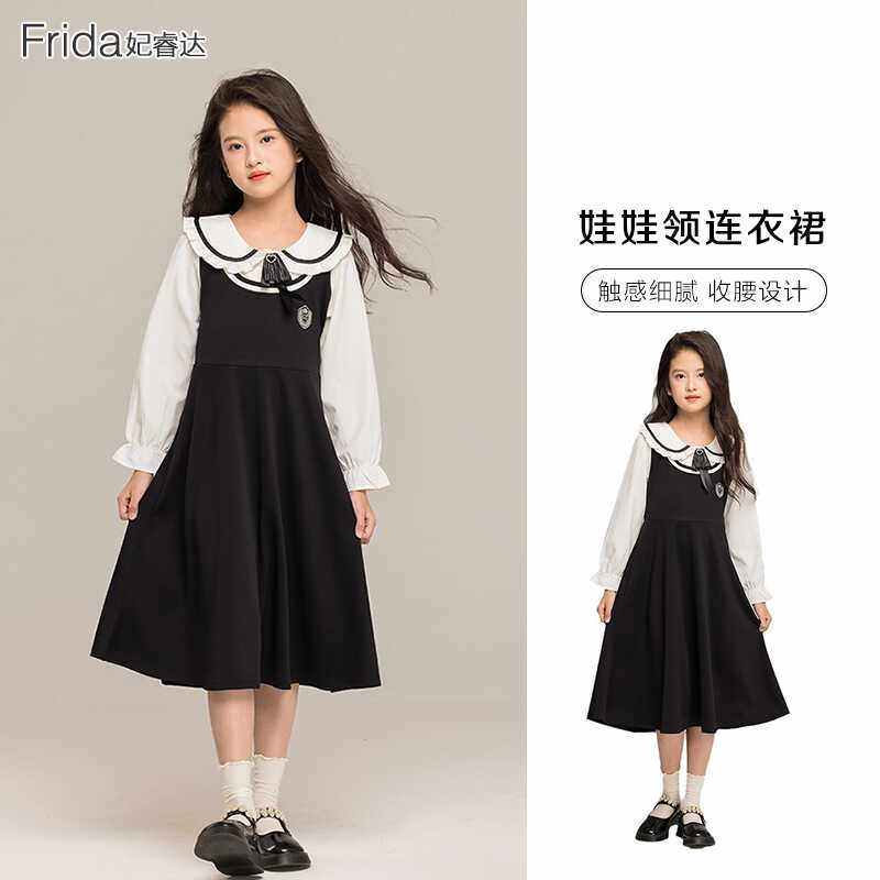 女童连衣裙春秋款超好看2025新款长袖娃娃领公主裙中大童两件套