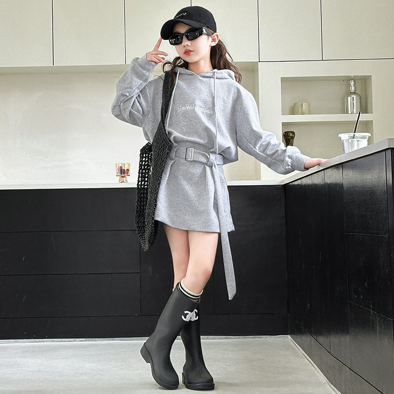 女童连衣裙春秋款2025新款儿童洋气收腰显瘦裙子秋装女孩连帽卫衣