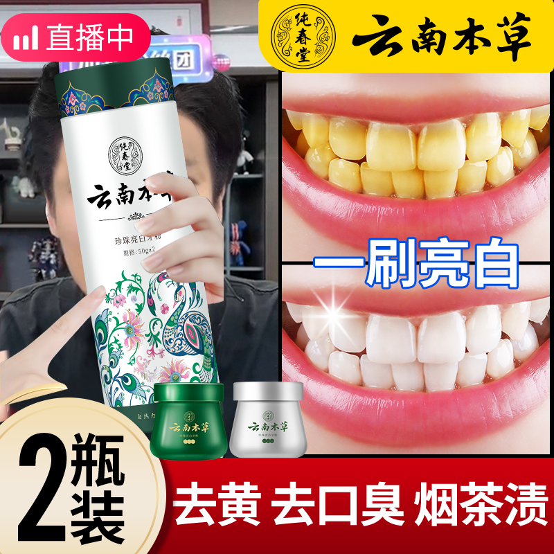 云南本草洗牙粉旗舰店正品亮白黄牙洗白牙齿美白黄牙刷牙牙渍清洁