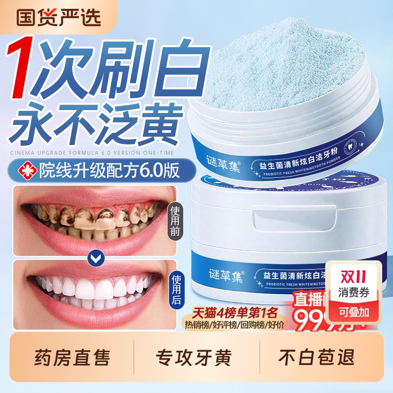 牙粉去黄洗白去渍黄牙除口臭洁牙粉美白牙齿洗牙清洁污垢溶解牙石