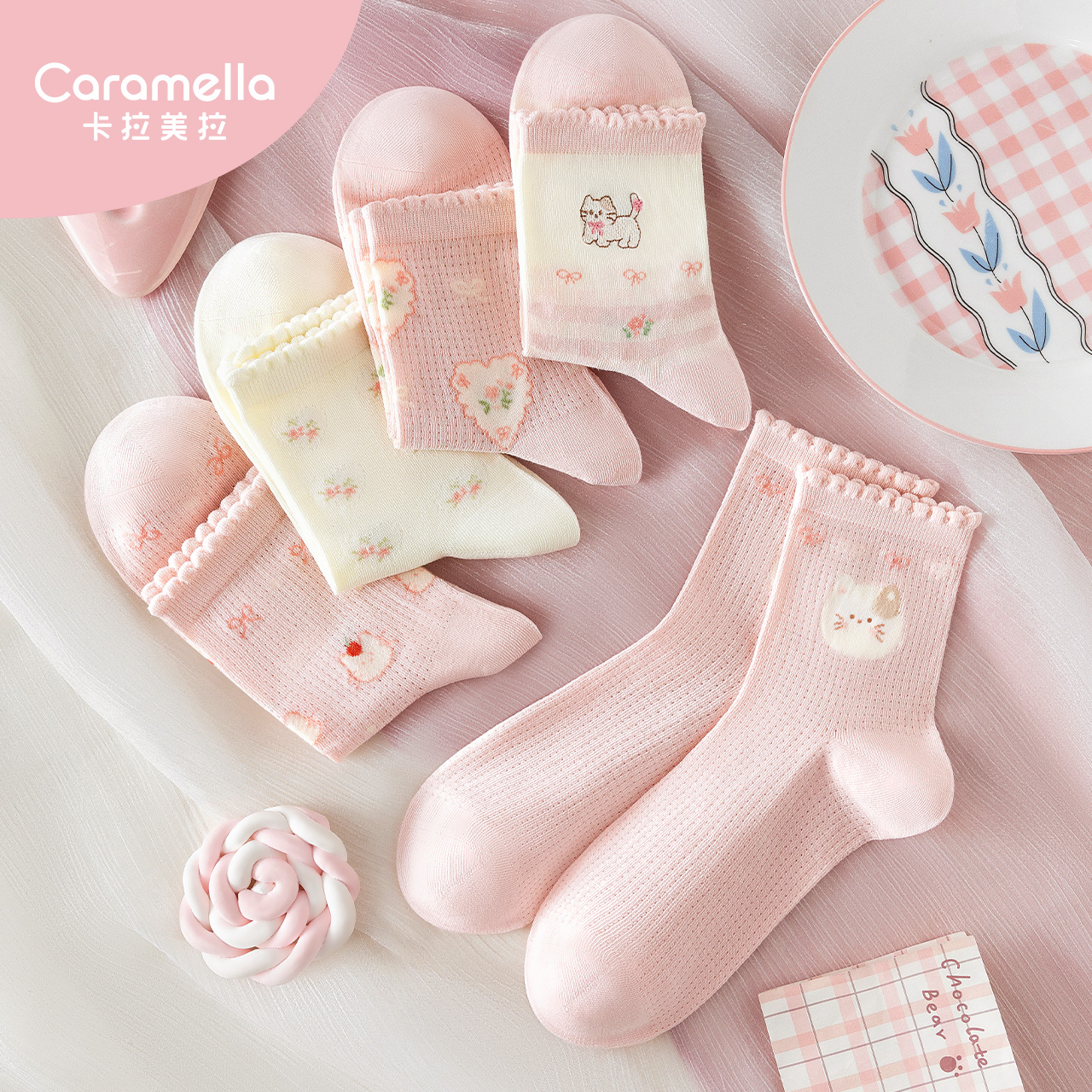 吉良先生 夏季薄款女袜日系多巴胺色袜子女中筒直角棉袜女生短袜
