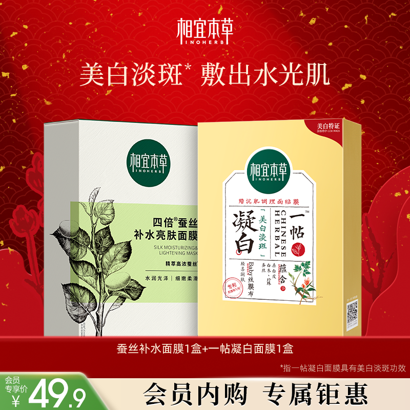 【会员内购会专享】相宜本草补水美白面膜组合蚕丝面膜+凝白面膜