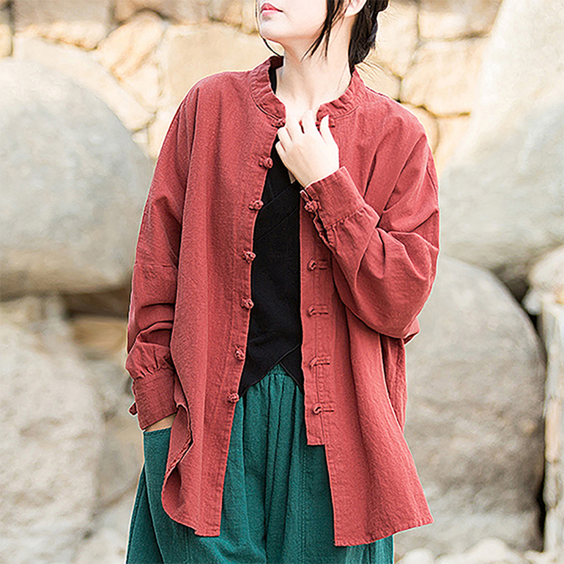 苎麻宽松衬衫女春秋2025年新款复古棉麻茶服上衣新中式太极服衬衣