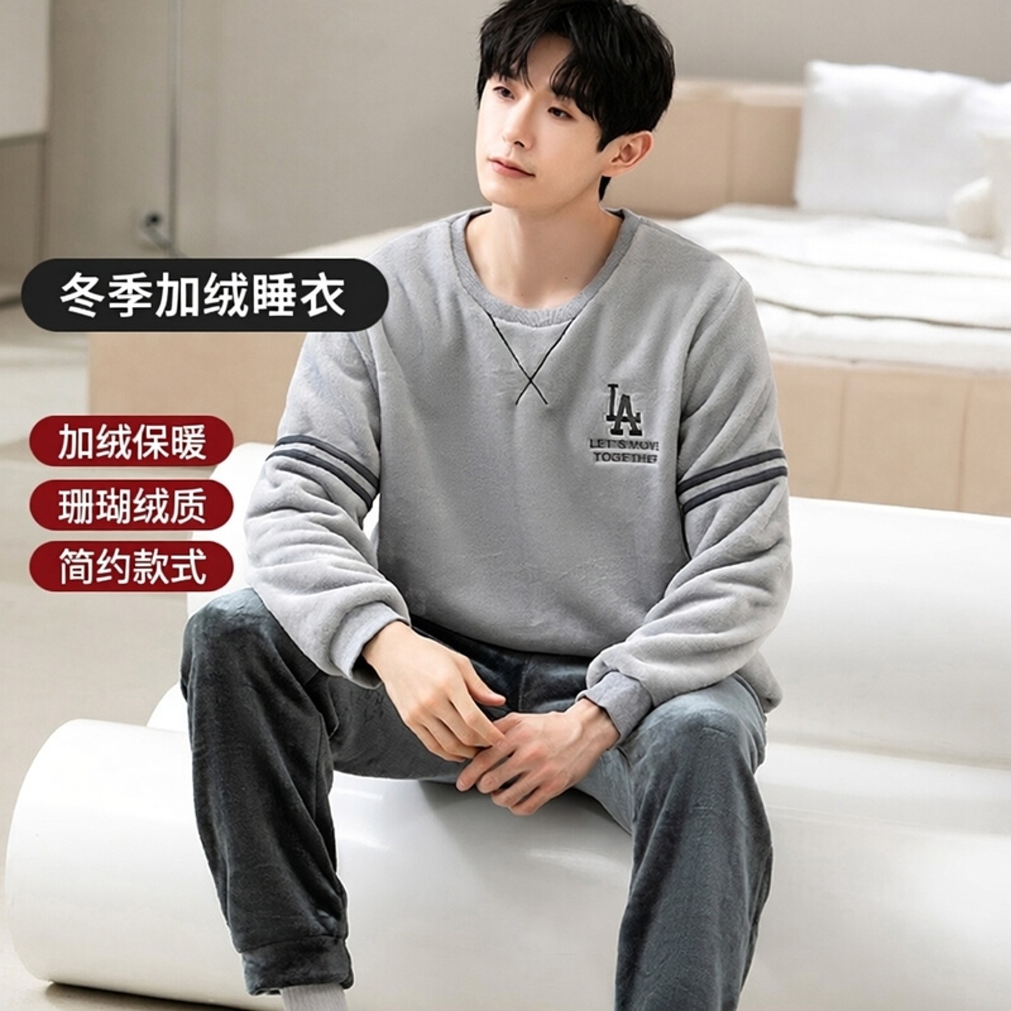睡衣男冬2025秋冬加厚加绒冬季简约珊瑚绒家居服套装可外穿法兰绒