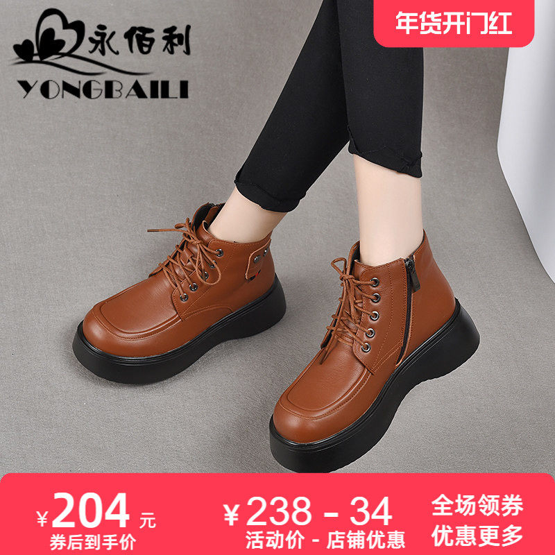 真皮厚底显瘦马丁靴女2025秋冬新款小个子高跟短靴百搭白色单靴子