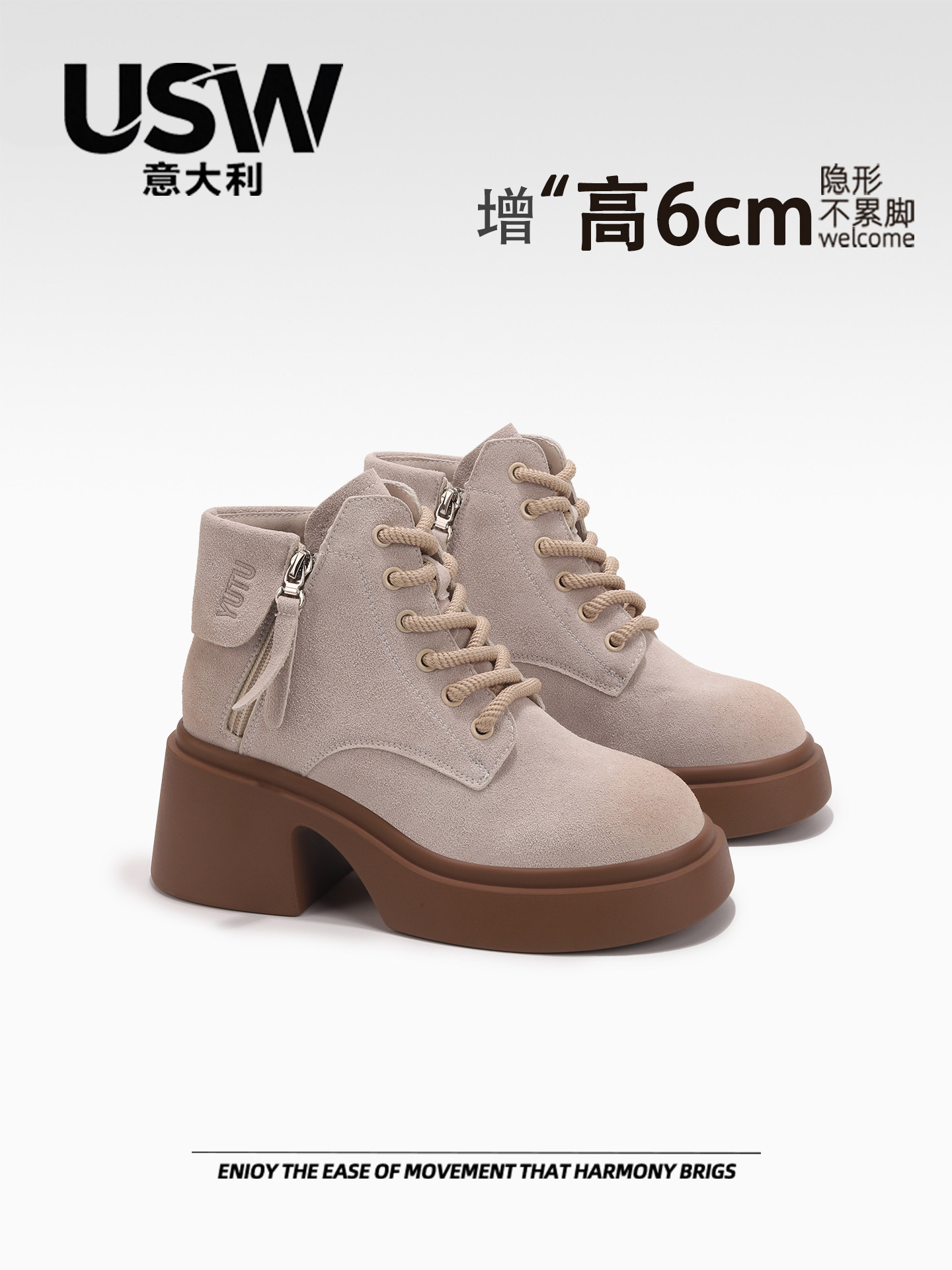 意大利usw增高6公分马马丁靴女2025新款厚底短靴高跟休闲百搭单靴