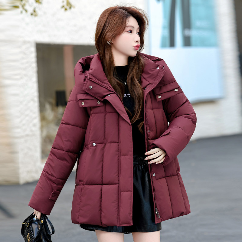 羽绒棉服女装冬季2025年新款宽松中长款收腰棉衣棉袄加厚菱格外套
