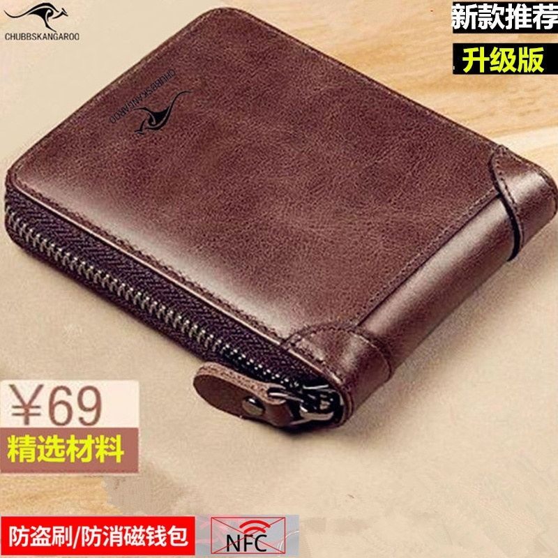 2025新款正品男款牛皮钱包短款大容量带拉链潮牌学生青年软真皮夹