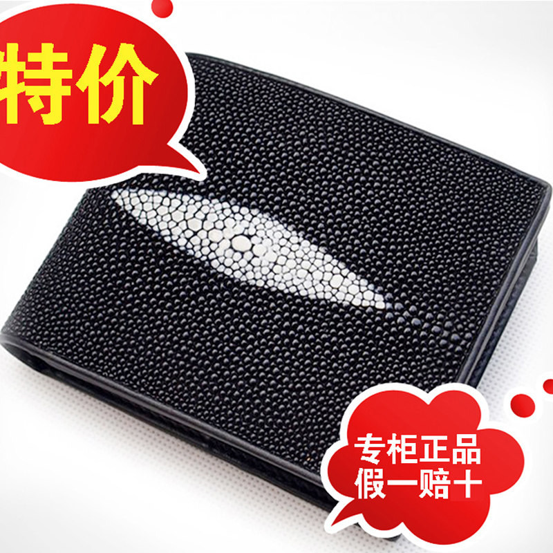 特价泰国珍珠鱼皮钱包皮包内层配牛皮真皮*新款男式短款皮夹正品