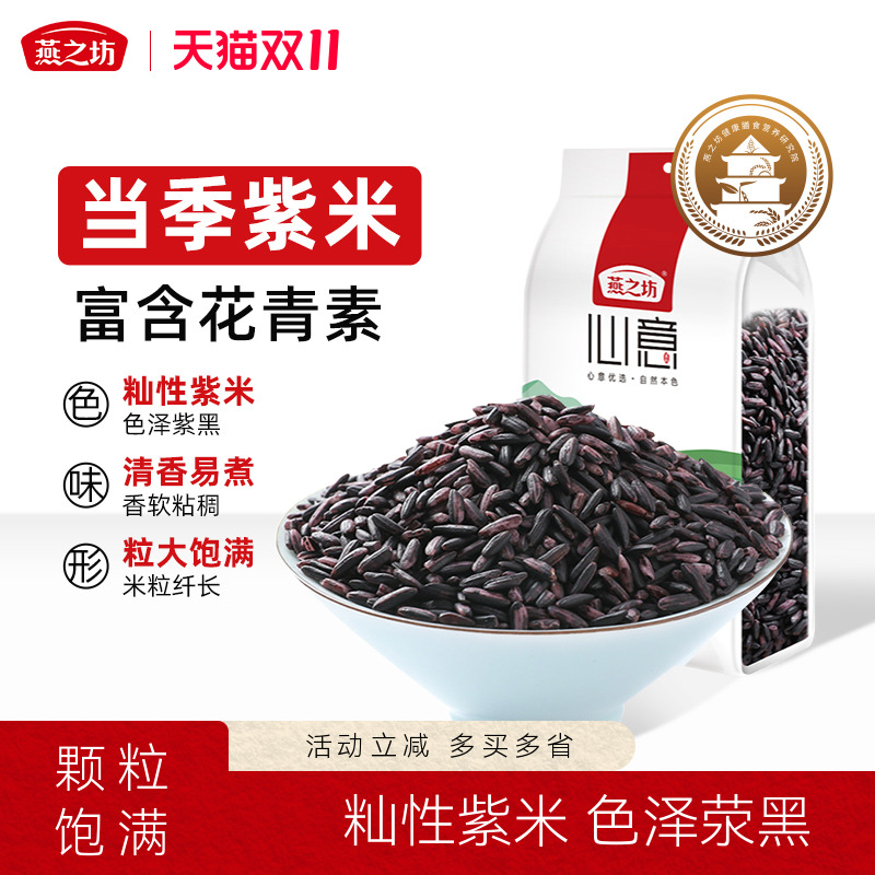 燕之坊紫米2斤真空包装农家五谷黑糯米面杂粮粗粮1kg紫米粥早餐粥