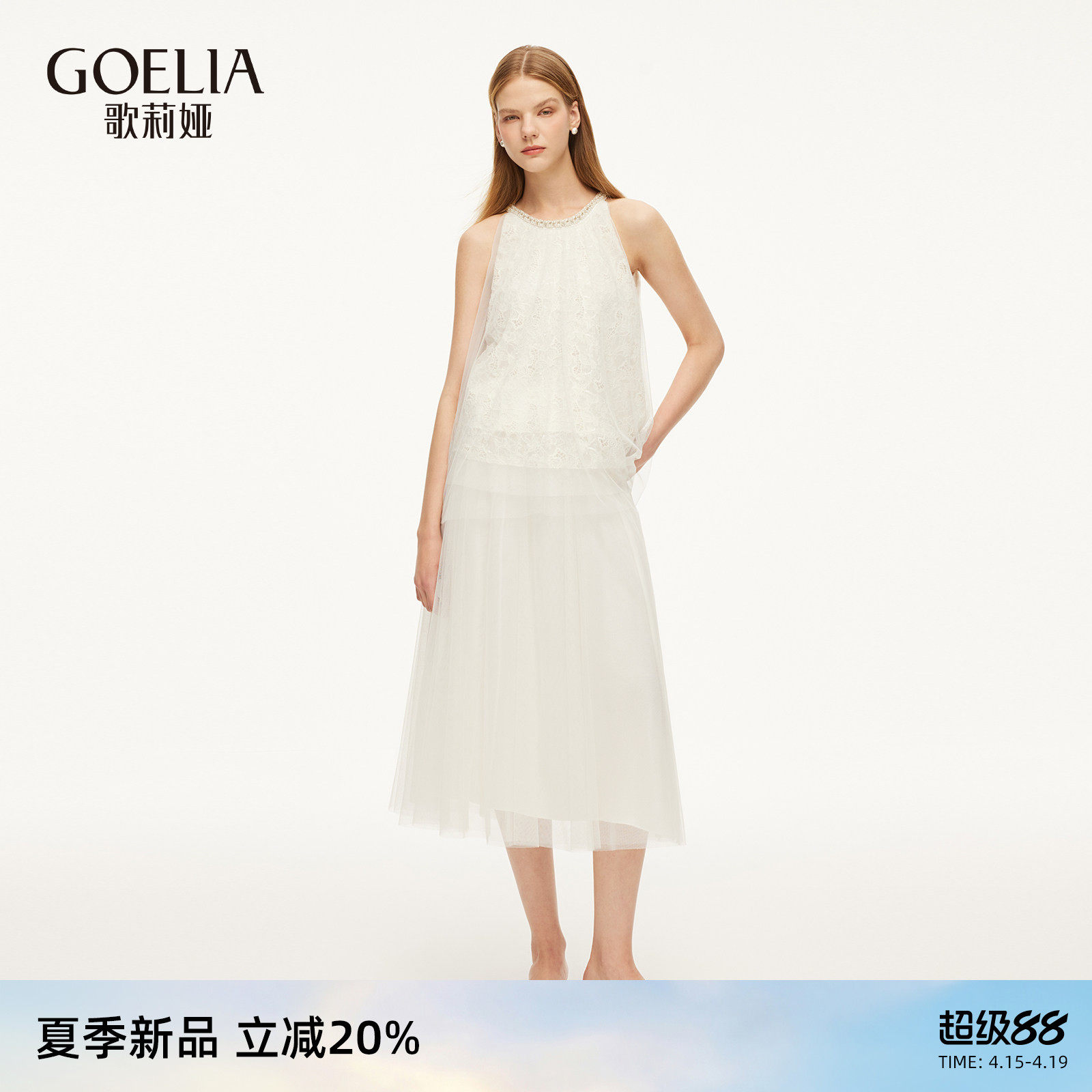 歌莉娅蕾丝绣花套装女2026新款夏季淡人高知穿搭一整套绝美两件套