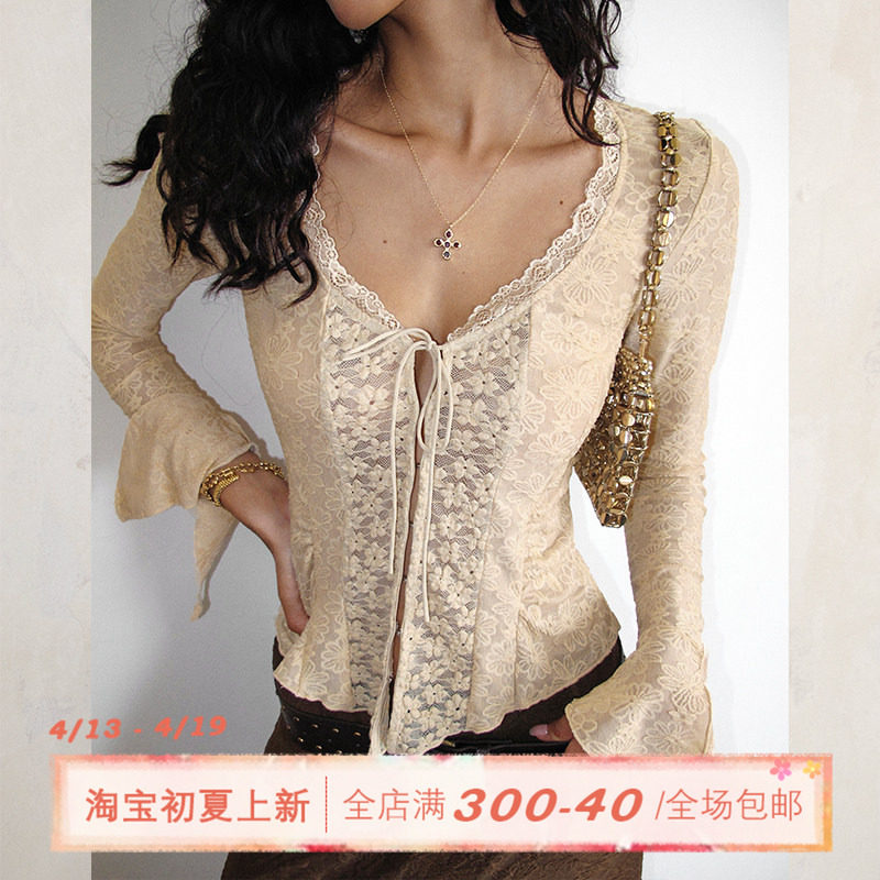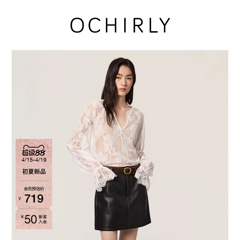 【热销补货】OCHIRLY欧时力 衬衫夏V领蕾丝防晒两件套配吊带背心