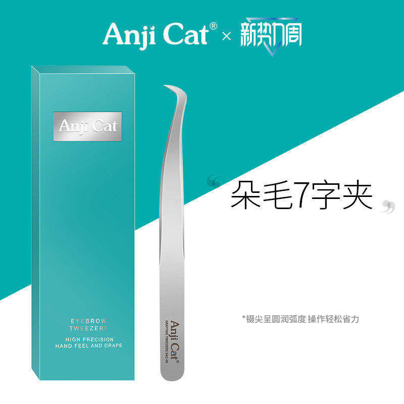 anjicat自己粘贴假睫毛7字夹平头美睫镊个人嫁接假睫毛弯头镊子