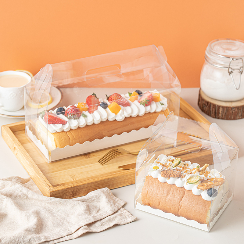 蛋糕卷包装盒透明手提整卷半卷瑞士卷打包盒毛巾卷慕斯甜品蛋糕盒