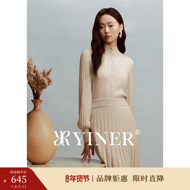 【刘涛同款】YINER音儿女装冬季法式半高领羊毛羊绒混纺针织衫