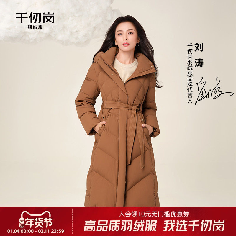 【刘涛同款】千仞岗冬季新款长款加厚收腰保暖时尚羽绒服鹅绒外套