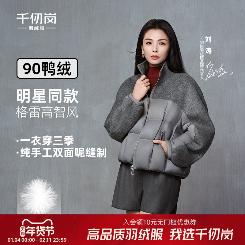【刘涛同款】千仞岗2025秋冬新款羽绒服短款羊毛拼接外套气质上衣