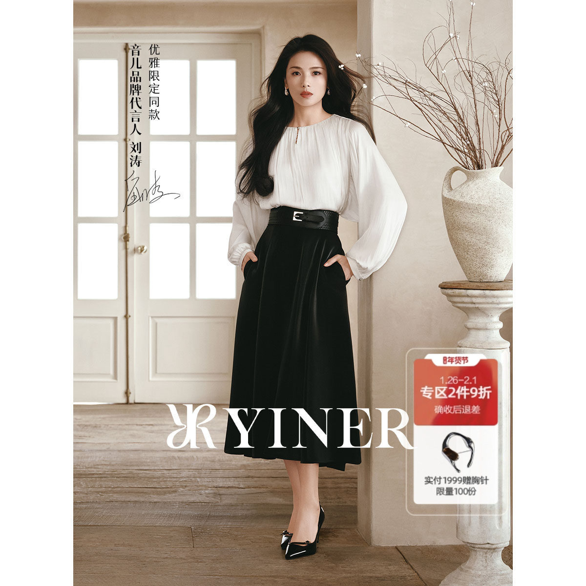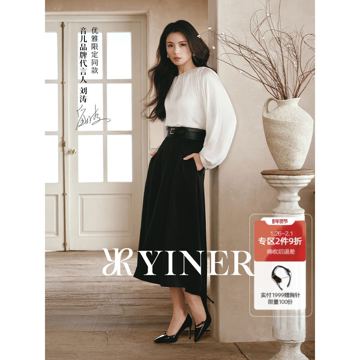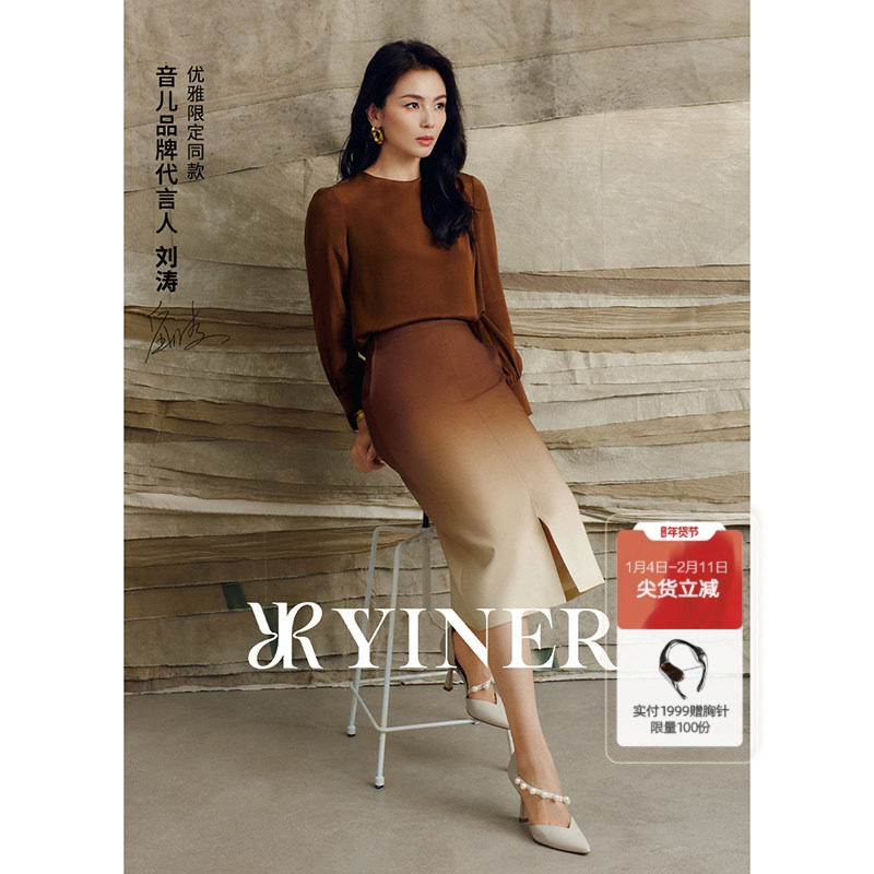 【刘涛同款】YINER音儿2025春季新法式优雅光泽缎面A字花瓣半身裙