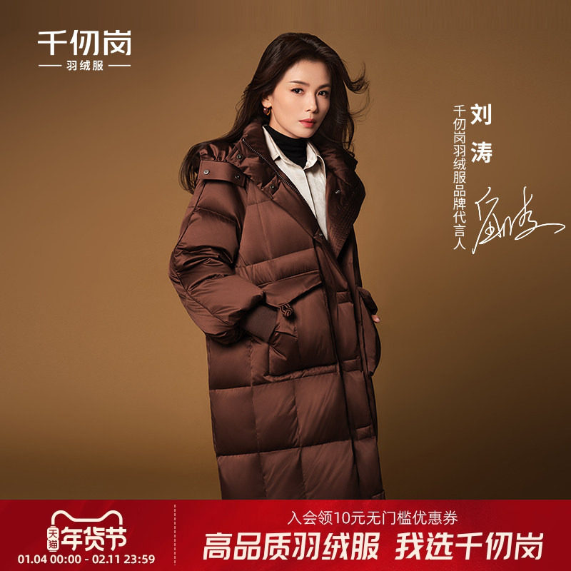 【刘涛同款】千仞岗2025冬季新款羽绒服长款95鸭绒保暖外套送手套