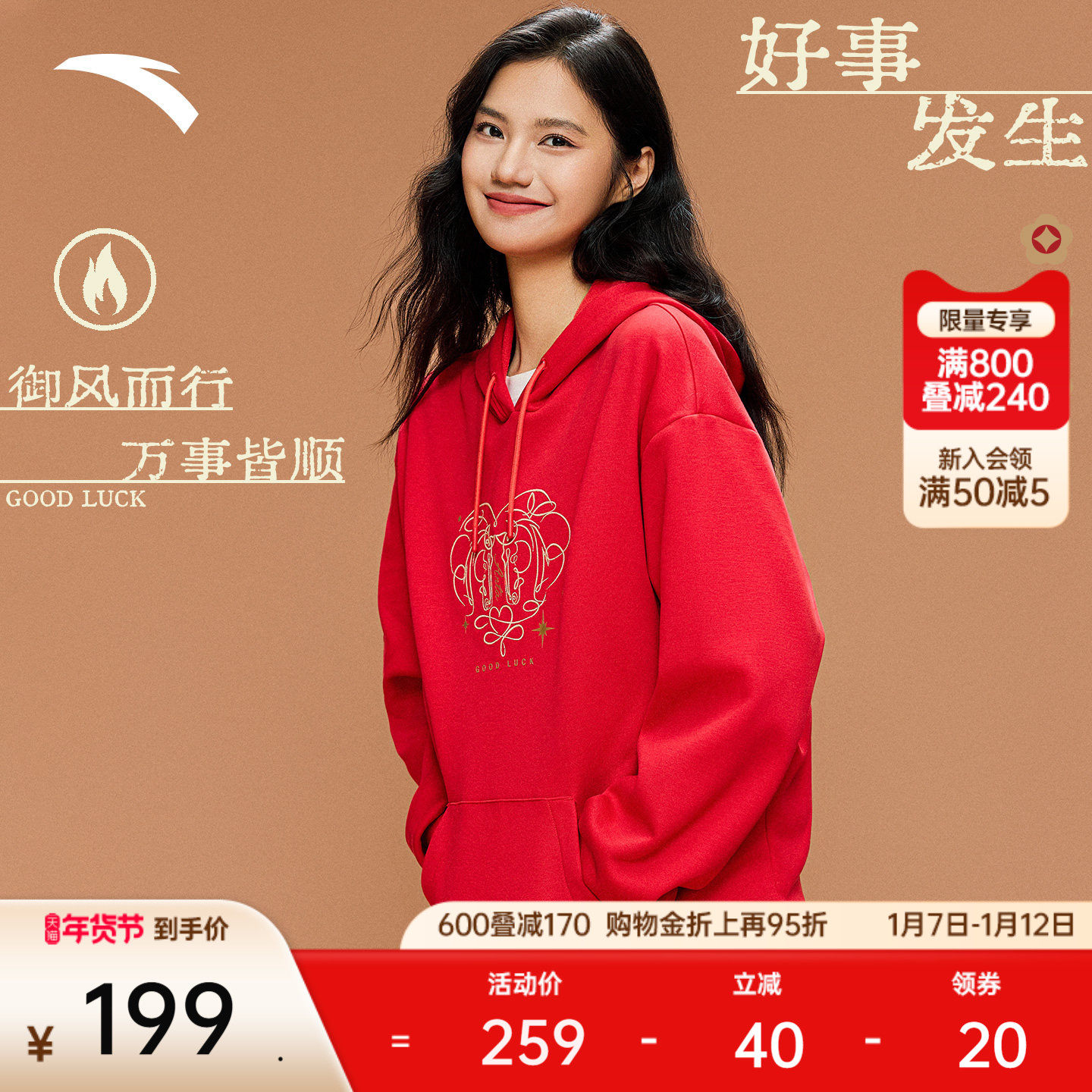 - 加绒连帽卫衣 女
