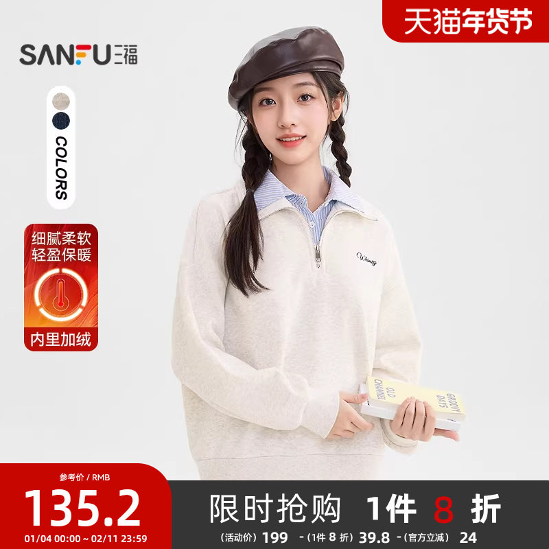 - 加绒加厚套头卫衣学生