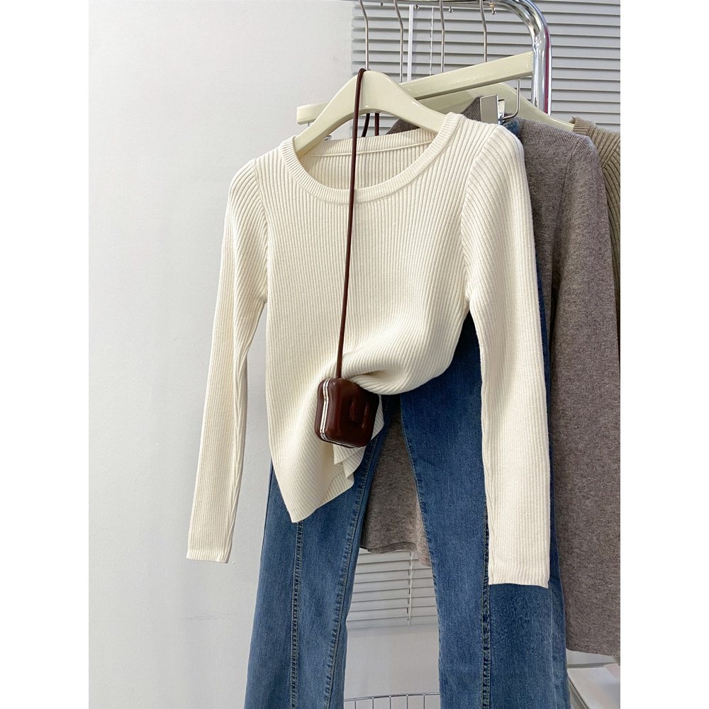 阔色杏色气质毛衣收腰长袖针织衫25秋冬季新款女装大衣内搭打底衫
